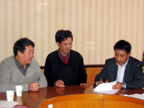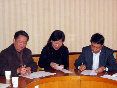 科技处处长王在泉同12位人文社会科学基金项目负责人及所在学院科研副院长一一签订了校立基金合同。