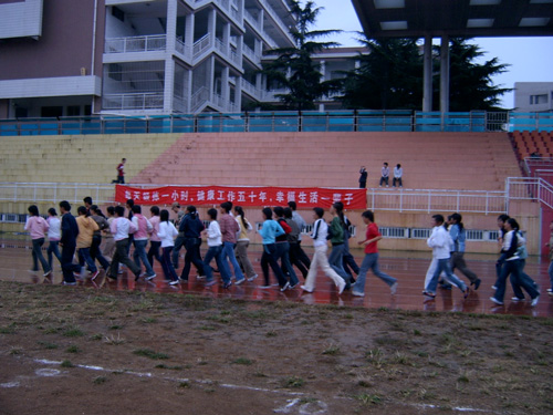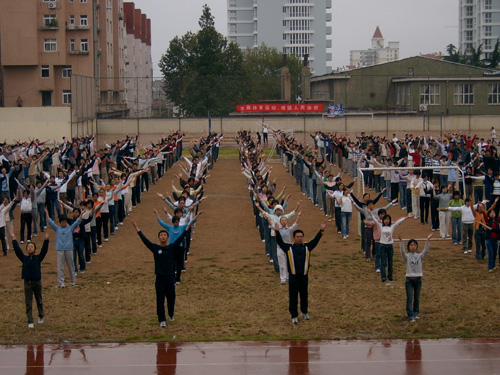 为培养学生集体主义观念,养成良好的生活习惯,提高学生的身体素质,进一步促进学风建设,自2005年9月永利官网四方校区实施了“迎世纪晨光,展学子风采——晨光行动”,全面恢复新生出早操制度。 9月26日6:00,991名新生以班级为单位排着整齐的队伍准时出现在操场,按照学校统一要求分别进行了跑操和广播体操锻炼。学生工作部(处)部(处)长王菁华、各学院学生工作干部及新生班主任共同来到晨练现场,对各个班级出操情况进行了监督和指导。