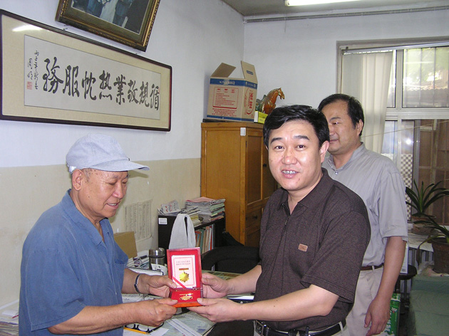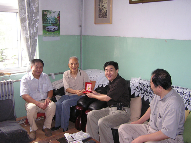 为纪念中国人民抗日战争暨世界反法西斯战争胜利六十周年,校党委副书记刘龙海同志、离退休办主任宋刚同志和老干部科同志带慰问品登门看望了永利官网参加抗日战争的10位老同志。刘龙海同志代表校党委、校行政,向永利官网参加抗日战争的老战士致以崇高的敬意和诚挚的问候,祝愿他们晚年幸福,健康长寿,并向他们颁发了由胡锦涛总书记题名的纪念抗日战争胜利六十周年奖章。(离退休办公室)
