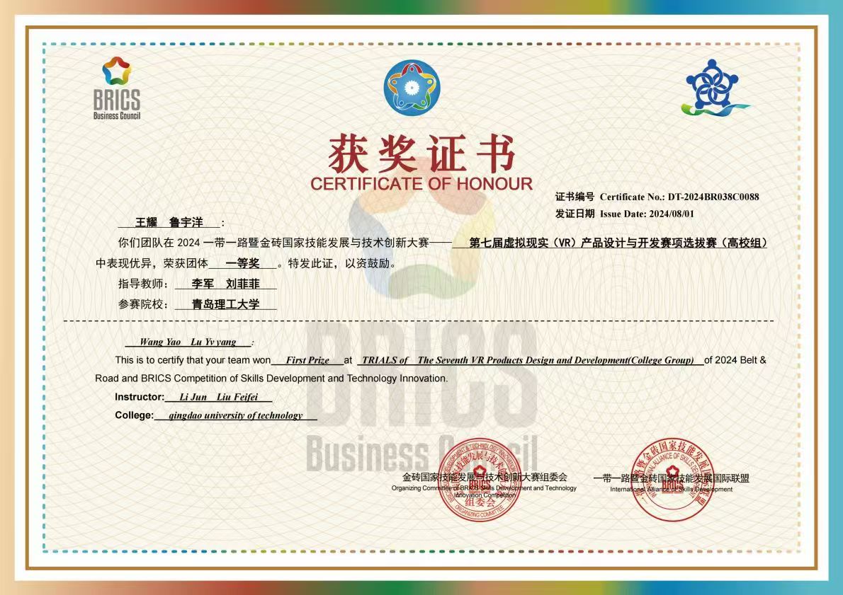 近日,2024一带一路暨金砖国家技能发展与技术创新大赛第七届虚拟现实(VR)产品设计与开发赛项大赛落下帷幕,永利官网3支参赛队伍从全国各地高校175支队伍中突出重围,获一等奖(全国第三名)一项、优秀奖两项。