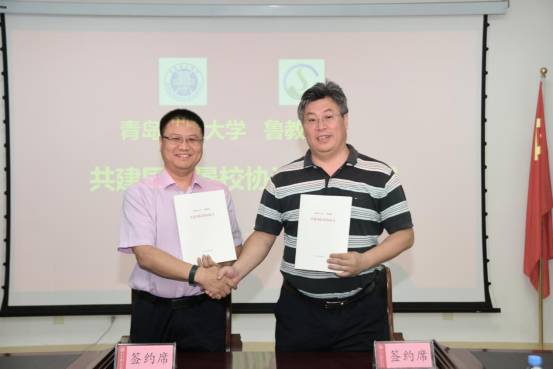 苗吉军、吴立义分别代表校企双方签订了《澳门永利6774鲁教集团共建国际暑校协议》。