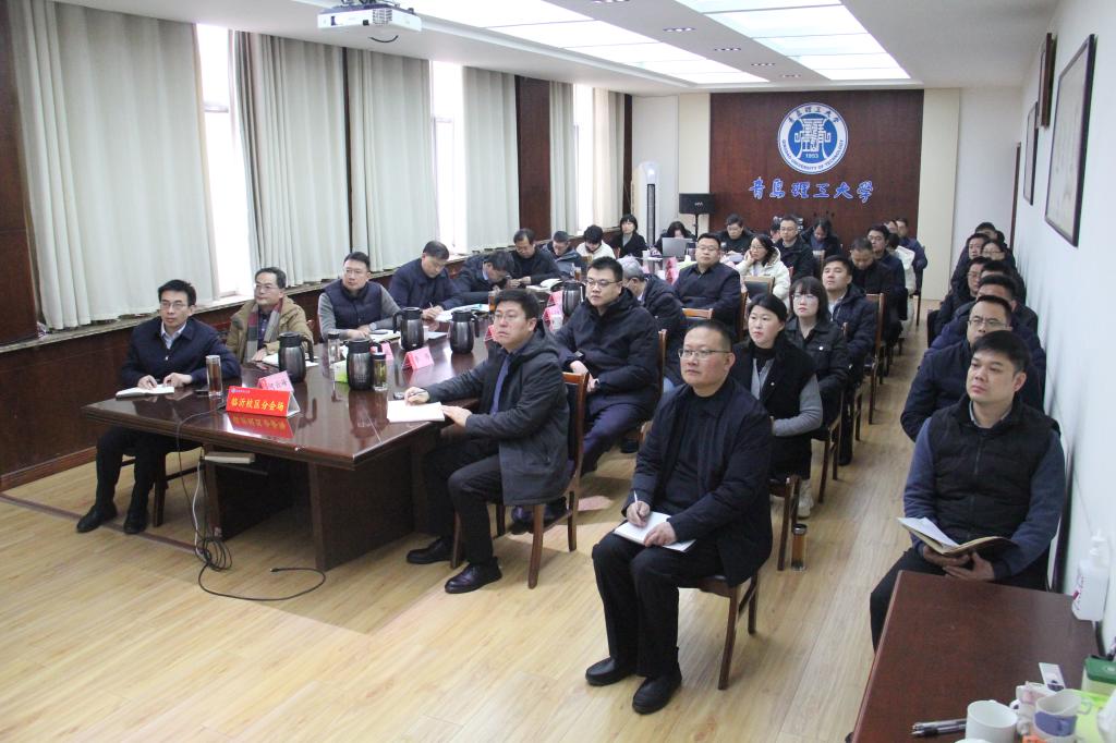 张凯校长以“担当作为改革创新以时不我待的紧迫感、使命感加快推动学校内涵式高质量发展”为主题作动员部署报告。他结合省属本科高校高质量发展教育改革创新绩效考核指标,以翔实的数据对比,就学校发展所处的环境、所面临的压力和挑战进行了全面剖析,就如何“在危机中育新机,于变局中开新局”提出了探索路径。一要统一思想、清醒认识学校当前发展面临的形势。正视学校发展面临的差距与不足,以“百舸争流、不进则退”的危机感、紧迫感、使命感,奋起直追,干起来、立起来,共同书写学校跨越发展的崭新篇章。二要改革创新、充分激发干部师生内生动力。进一步深化学校综合改革,抓住校院二级管理体制改革在内部管理体制机制改革中的关键作用,切实增强二级学院自主权和办学活力,凝聚全校改革创新、锐意进取、同心同向推动学校高质量发展的强大合力。三要担当作为,高质量完成2025年各项重点工作任务。严格落实“一引领、一保障、一赋能、五提升”工作要点要求,强化党建引领,提高管理保障,实现学科专业建设水平、教育教学质量、人才发展成效、科技创新与社会服务能力、国际化办学水平的全面提升,努力推动学校事业高质量发展行稳致远。