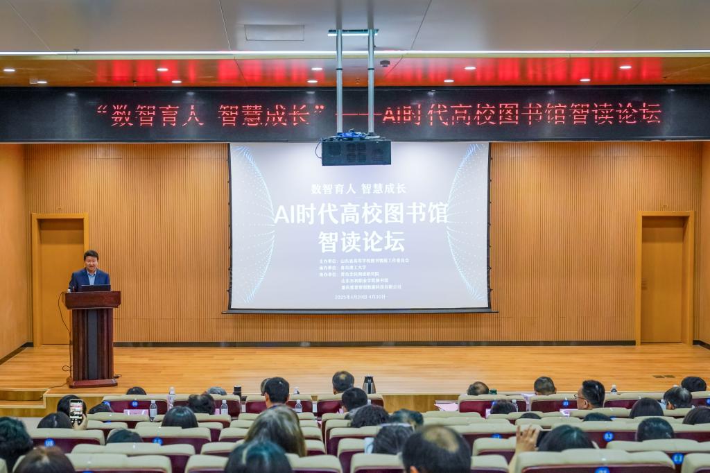 为构建新型图书馆智慧服务体系,响应全民阅读号召和助力推进国家教育数字化战略,4月29日,由山东省高等学校图书情报工作委员会主办、澳门永利6774承办,青岛全民阅读研究院、山东水利职业学院图书馆、重庆维普智图数据科技有限公司协办的“2025年AI时代高校图书馆智读论坛”在图书馆学术报告厅举行。论坛以“数智育人,智慧成长”为主题,聚焦人工智能技术与阅读服务的深度融合,吸引了省内外高校图书馆专家、学者、行业机构代表及师生等200余人参与,共同探讨AI时代下的知识服务新范式与智慧阅读新模式。