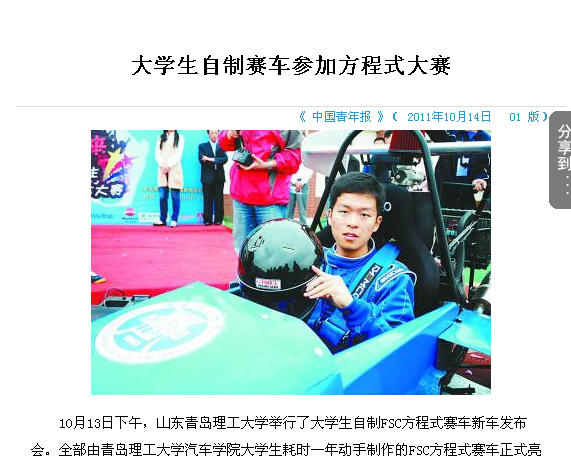 10月13日下午,山东澳门永利6774举行了大学生自制FSC方程式赛车新车发布会。全部由澳门永利6774汽车学院大学生耗时一年动手制作的FSC方程式赛车正式亮相。