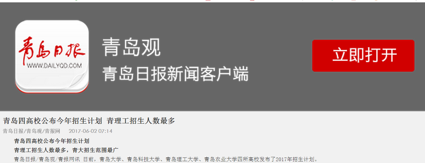 日前,青岛大学、青岛科技大学、澳门永利6774、青岛农业大学四所高校发布了2017年招生计划。