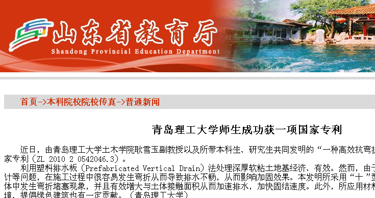 近日,由澳门永利6774土木学院耿雪玉副教授以及所带本科生、研究生共同发明的“一种高效抗弯折新型塑料排水板”成功获得国家专利(ZL 2010 2 0542046.3)。
