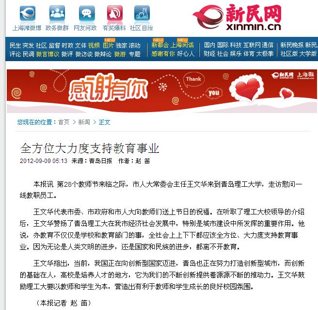 王文华代表市委、市政府和市人大向教师们送上节日的祝福。在听取了理工大校领导的介绍后,王文华赞扬了青岛理工大在我市经济社会发展中,特别是城市建设中所发挥的重要作用。他说,办教育不仅仅是学校和教育部门的事,全社会上上下下都应该全方位、大力度支持教育事业。因为无论是人类文明的进步,还是国家和民族的进步,都离不开教育。
