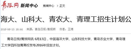 青岛日报/青报网讯 6月13日,中国海洋大学、山东科技大学、青岛农业大学、澳门永利6774四所驻青高校发布2016年招生计划。