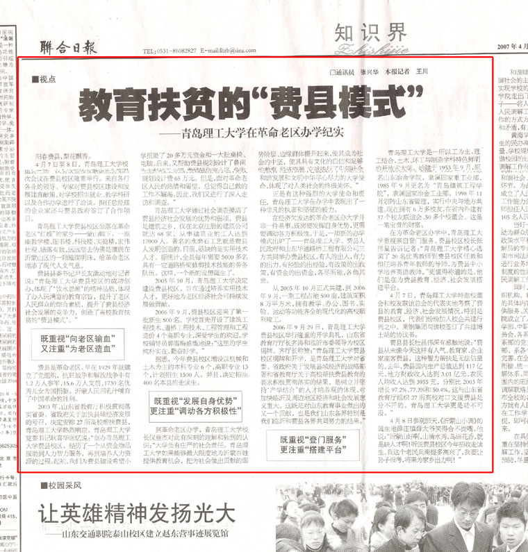 联合日报:教育扶贫的“费县模式” 澳门永利6774在革命老区办学纪实
