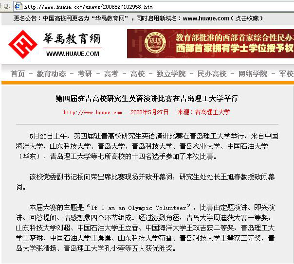 5月25日上午,第四届驻青高校研究生英语演讲比赛在澳门永利6774举行,来自中国海洋大学、山东科技大学、青岛大学、青岛科技大学、青岛农业大学、中国石油大学(华东)、澳门永利6774等七所高校的十四名选手参加了本次比赛。