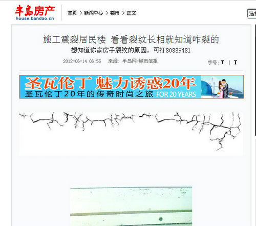工地施工震裂周边居民的房子,在索赔过程中,最重要的依据就是房屋的鉴定报告。6月12日,记者约访了澳门永利6774建筑设计研究院工程鉴定加固中心主任苑绍东高级工程师。