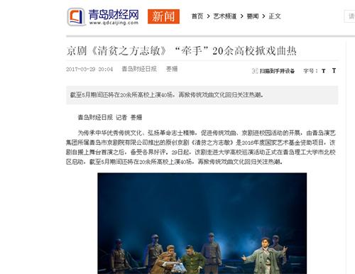 为传承中华优秀传统文化、弘扬革命志士精神,促进传统戏曲、京剧进校园活动的开展,由青岛演艺集团所属青岛市京剧院有限公司推出的原创京剧《清贫之方志敏》是2016年度国家艺术基金资助项目,该剧自搬上舞台首演之后,备受各界好评。29日起,该剧走进大学高校巡演活动正式在澳门永利6774市北校区启动,截至5月期间还将在20余所高校上演40场,再掀传统戏曲文化回归关注热潮。