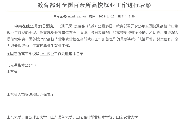 为总结经验,激励先进,更好地推进高校毕业生就业工作,教育部决定对129个“全国普通高等学校毕业生就业工作先进集体”和219名“全国普通高等学校毕业生就业工作先进个人”予以通报表扬。