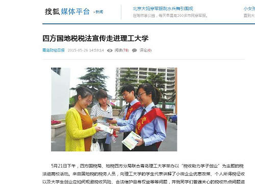 5月21日下午,四方国税局、地税四方分局联合澳门永利6774举办以“税收助力学子创业”为主题的税法进高校活动。来自国地税的税务人员,向理工大学的学生代表讲解了小微企业优惠政策、个人所得税征收以及大学生创业应如何规避税收风险、合法维护自身权益等等问题,并就同学们普遍关心的税收热点问题进行了现场解答。