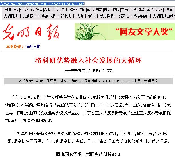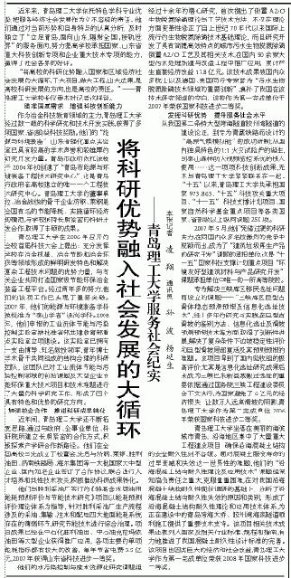 近年来,澳门永利6774依托特色学科专业优势,把服务经济社会发展作为义不容辞的责任。他们通过对当前形势和自身特点的认真分析,及时确立了“立足青岛,面向山东,辐射全国,接轨世界”的服务面向,努力提高学校承担国家、山东省重大科技创新专项和企业重大技术专项的能力,赢得了社会各界的好评。