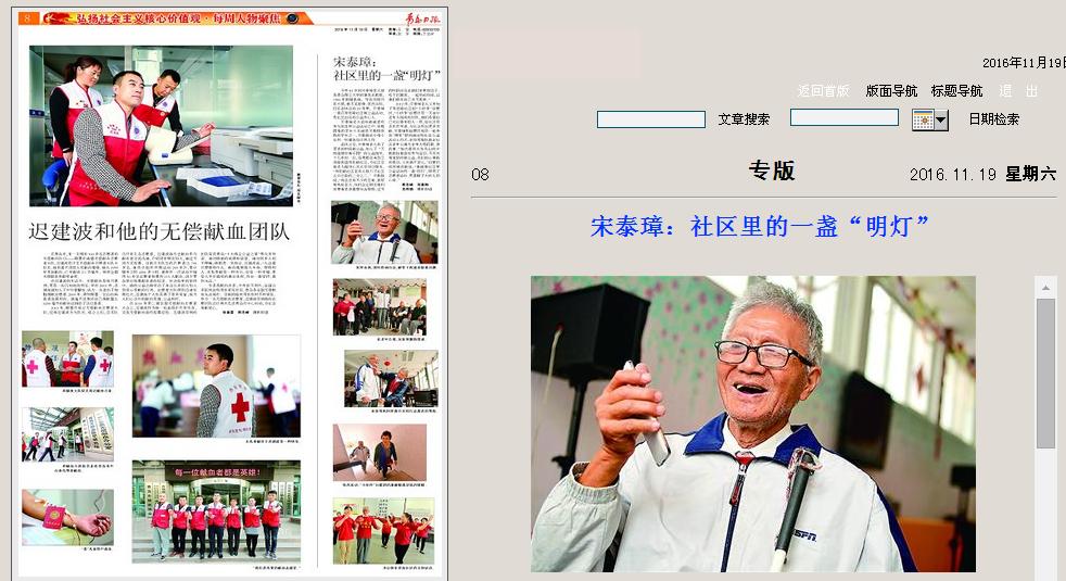 今年81岁的宋泰璋老人曾是澳门永利6774的建筑系教授,1985年眼睛患病,导致双眼只有光感,看不见影像。虽然失明,但在退休后的20年里,宋泰璋一直在寿张路社区做公益活动,是社区出名的公益热心人。