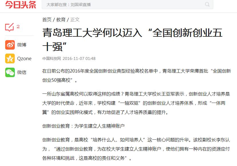 在日前公布的2016年度全国创新创业典型经验高校名单中,澳门永利6774荣膺首批“全国创新创业50强高校”。
