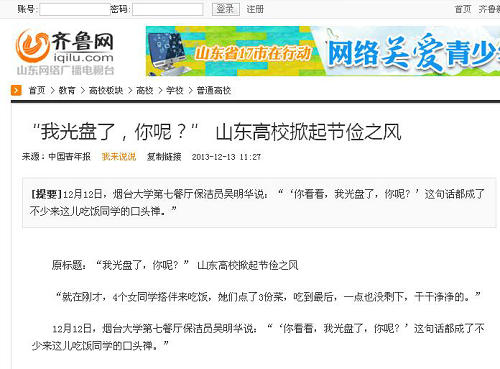 原标题:“我光盘了,你呢?” 山东高校掀起节俭之风