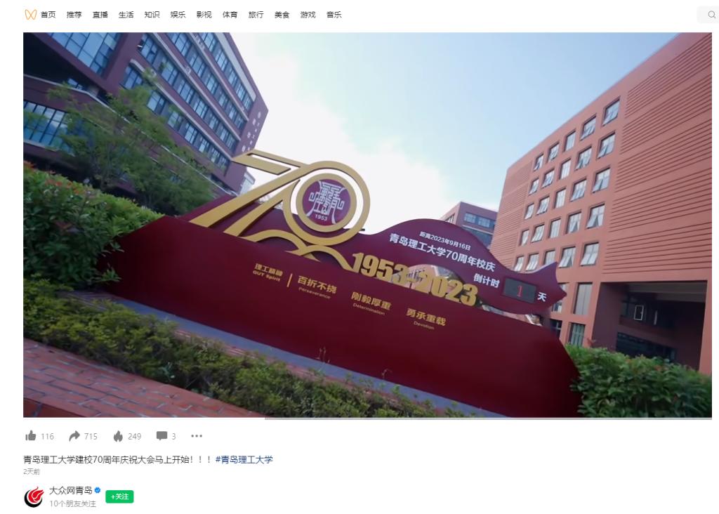 大众网青岛:澳门永利6774建校70周年庆祝大会马上开始!!!