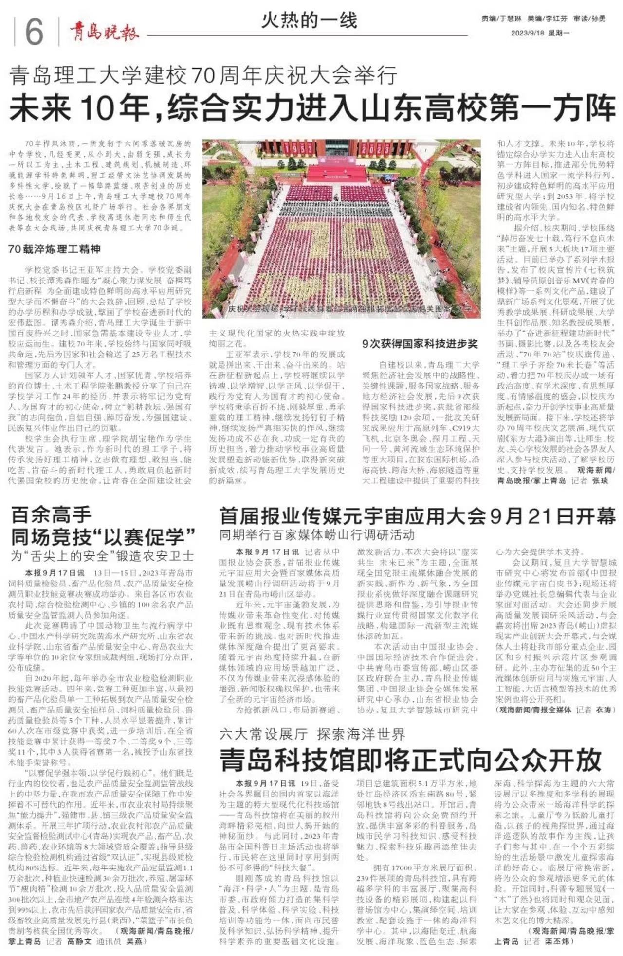 青岛晚报:澳门永利6774建校70周年庆祝大会举行