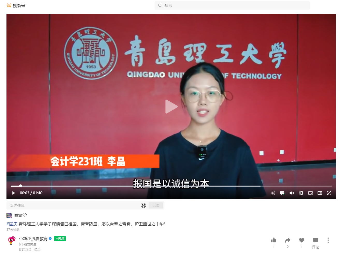 新浪视频号:澳门永利6774学子深情告白祖国,青春热血,愿以吾辈之青春,护卫盛世之中华!