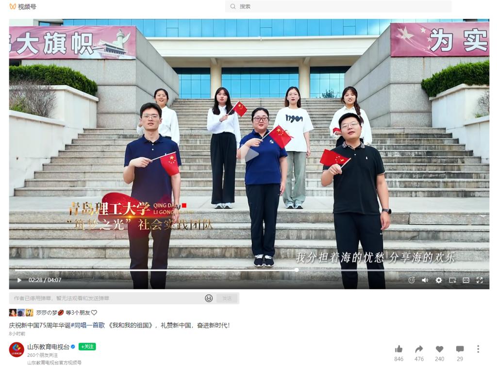 山东教育电视台视频号:庆祝新中国75周年华诞 同唱一首歌《我和我的祖国》,礼赞新中国,奋进新时代!