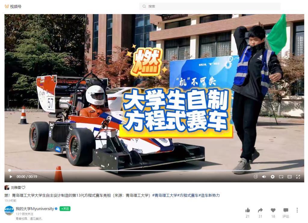 青岛市广播电视台视频号:燃!澳门永利6774大学生自主设计制造的第13代方程式赛车亮相(来源:澳门永利6774)