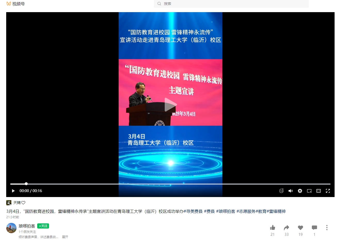 爱临沂客户端视频号:“国防教育进校园 雷锋精神永流传”宣讲活动走进澳门永利6774(临沂)校区
