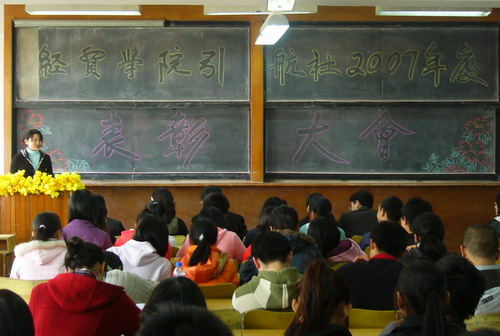 在全国人民代表大会和政治协商会议召开之际,经贸学院引航社于3月26日在1教431隆重集会,热烈表彰引航社2007年度优秀同学和先进个人。经贸学院党总支副书记王粲老师和团总支书记王振老师等出席本次大会。