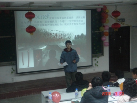 一段欢快精彩的福娃争辉视频拉开了比赛的帷幕,接下来的才艺表演更是精彩不断,令观众喝彩连连。幽默诙谐的相声、诚恳动情的吉他弹唱、激情满载的诗歌朗诵……精彩纷呈,高潮迭起。其后的必答题环节,选手们冷静沉着,应对自如,展示了各自丰富的奥运知识。随后的英语演讲环节,参赛选手声情并茂,那份为奥运喝彩的高涨热情深深的感染了在场的每位观众。最后的“勇往直前”环节,选手们更是斗智斗勇,挑战自我,积极应对,充分展示了各自的智慧和勇气。整场比赛掌声不断,气氛一片欢腾。最后,07自本一二班夺得团队冠军,来自07自本九班的于洋同学以精彩的英语演讲荣获“最佳个人表现奖”。比赛还评出了二等奖一项,三等奖两项,“最佳团队合作奖”一项。