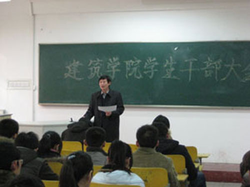 2月24日,建筑学院08年第一次学生干部会议在建筑馆314召开,建筑学院党总支副书记侯方高,团总支书记谢春虎,辅导员朱莉、高江老师出席了此次会议。参加此次会议的还有建筑学院05、06、07级各班主要学生干部以及建筑学院学生会的主要成员。