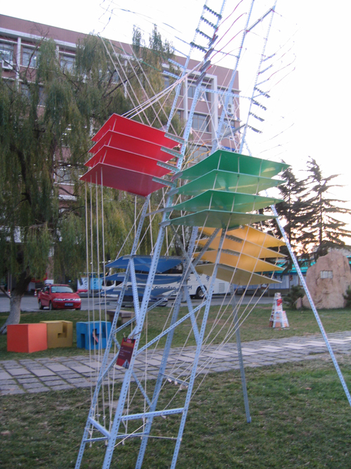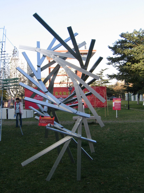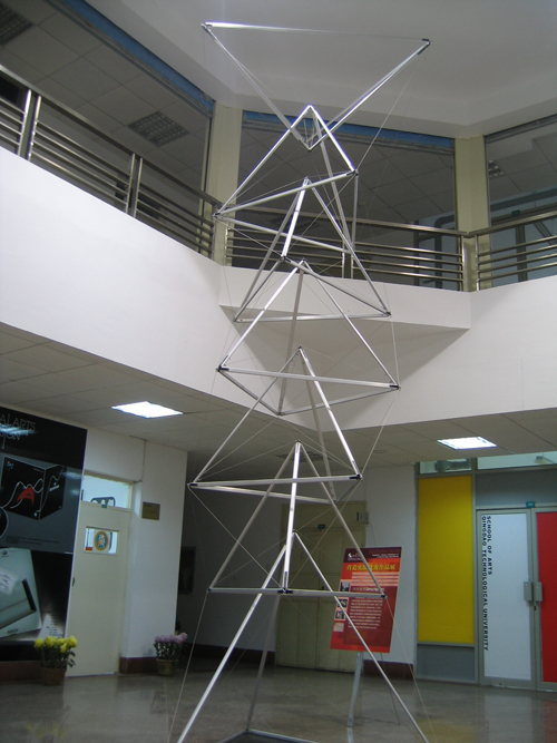 大赛共收到来自建筑学院、土木学院等学院的作品13份,评出一等奖一组,二等奖二组,三等奖三组及优秀奖若干。其中刘晓林、吴岩等同学设计的《NET·EQ》将柔性材料和刚性材料完美的结合在一起,并使用透明的鱼线使钢架互相脱离,形成了强烈的视觉冲击,获得此次大赛的一等奖。另两组设计也是尽显风采,彭玉明、黄小绘等同学设计的作品《肆+1》虽采用了传统的旋转、变化、放射的设计思想,但选用铝合金作为实验材料,充分利用了铝合金强度大、自重轻的特点从而使艺术感染力和结构的稳定性都得以最大程度的体现。丁初敏、王慧等同学的作品《成长》将万用角钢和红黄蓝绿悬浮板巧妙的融合在一起,制造出奇异的美学形式。其它三组的设计《钛立方·析》、《足球烯》、《X》也以巧妙的构思和对材料的创新利用获得三等奖。颁奖仪式后,王少飞老师就结构与形式对参赛作品作了简明扼要的总结。