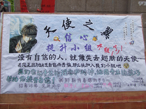 12月12日,人文学院社会工作系“天使之翼”信心提升小组成立并面向全校同学招募组员。
