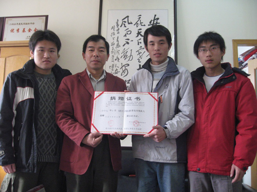 12月6日上午,土木工程学院绿丝带健心协会会长贺文举、副理事长董赛一行来到青岛市残疾人福利基金会,将500元志愿温暖金交到基金会秘书长杜福顺手中,并向杜秘书长颁发了顾问聘书,标志着协会与基金会合作关系的确立。