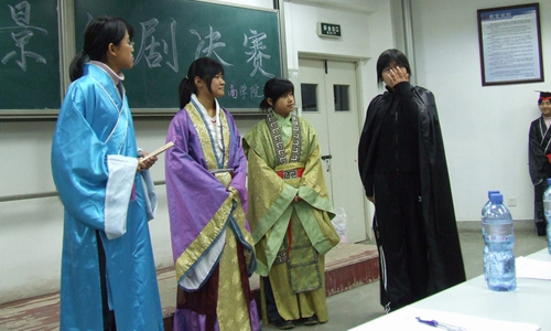 晚7点,经初赛、复赛选拔出的10组选手开始了总决赛的角逐。各组选手表演认真投入,剧情结合商学院的专业,涉及到理财、管理、营销、经济法等专业课知识。由于剧情的趣味、幽默、搞笑,再加上选手们的精彩表演,不断引起现场观众的热烈掌声,使得现场气氛显得异常活跃。最后,来自07级商学院(8)班的短剧《歪说三国》以其独特的编剧风格和选手们逼真表演,获得本次决赛第一名。本次决赛还评出了最佳编剧奖和最佳演员奖各一名,商学院学生会主席王雯迪对比赛进行了点评。