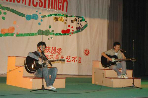 9月26日晚,“庆仲秋、迎国庆”暨2007级迎新生晚会在黄岛校区科学会堂举行。