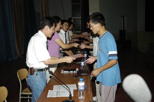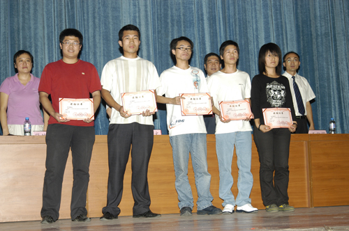 王廷和书记宣读了机械学院06-07学年获省级以上荣誉称号的学生名单并颁发了荣誉证书,全场响起了热烈的掌声。通过表彰先优给同学们树立了榜样,在同学中形成了“比学赶帮超”的争先氛围,也给同学们在今后的学习和科技创新方面带来了信心 ,同时对我院的学风建设和本次教学水平评估具有积极的推动作用。(学生记者 刘少洁)