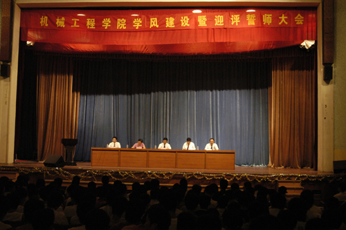 9月14日晚上七点,机械学院全体师生在北院礼堂召开了学风建设暨学生迎评誓师大会。会议由机械学院孟广耀副院长主持,机械学院党总支书记王廷和、院长谭继文、副书记薛炜华、副院长王优强以及各班班主任出席了大会。