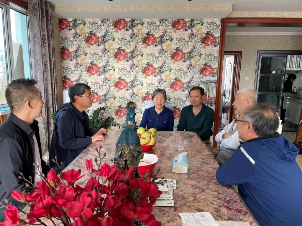 在重阳节前夕,离退休党委书记李洪民率队,走访看望抗美援朝老英雄、离休干部申中甫,林双华、刘秀勤夫妇,向他们送去学校的关怀和温暖,并致以节日的问候。