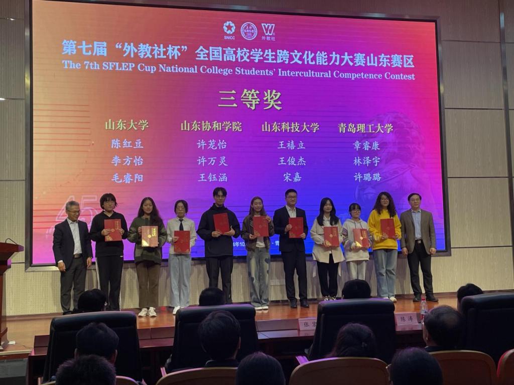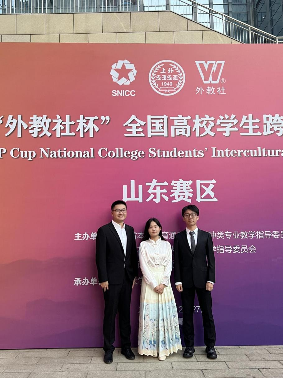 10月26日至27日,第七届“外教社杯”全国高校学生跨文化能力大赛(山东赛区)在青岛大学举办。永利官网人文与外国语学院英语专业章睿康同学、商学院财务管理专业许璐璐同学、国际商务专业林泽宇同学(指导教师:李娇)组建的团队在大赛中喜获省级三等奖。