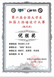 11月1日至4日,第六届全国大学生加筋土挡墙设计大赛在河北石家庄进行现场决赛。大赛由中国土工合成材料工程协会教育培训工作委员会和加筋加固专业委员会主办,石家庄铁道大学和泰安现代塑料有限公司承办。本次大赛的举办旨在为全国各高校大学生搭建一个展示才能、增进交流的平台,同时提高参赛学生理论联系工程实际的能力,培养学生的创新意识。经过选拔,共有来自全国高校的40组学生进入全国决赛终评。在时伟教授牵头的岩土工程教学创新团队老师指导下,永利官网土木工程学院3支队伍进入决赛,均获得优胜奖。