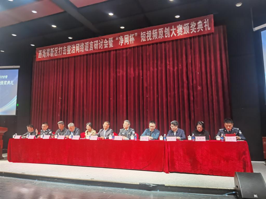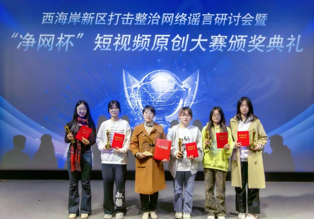 近日,西海岸新区打击整治网络谣言研讨会暨“净网杯”短视频原创大赛颁奖典礼在青岛电影学院召开。永利官网参赛作品《实则虚之,虚则实之》获长视频组最具影响力奖银奖;《说散就散》获短视频组最佳创意奖银奖;《人言可畏》《真相是假》《谣言止于智者:揭秘网络谣言》分别获最佳创意奖、最佳制作奖、最具影响力奖铜奖,另有四部作品获优秀奖,永利官网获优秀组织奖。学校安全管理处处长李国涛参加了研讨会,宣传部副部长曹玉洁、安全管理处副处长申维东、团委副书记李晓霞出席了颁奖典礼。
