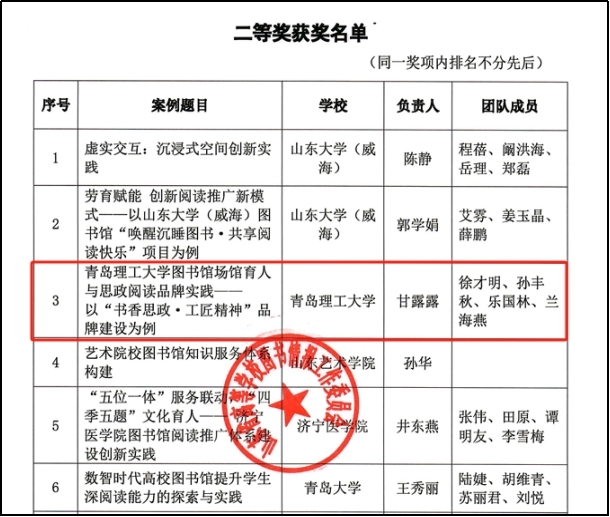 会议最后进行了工作表彰,永利官网图书馆荣获山东省高校图工委多项表彰。其中,两位馆员在第三届“智信杯”山东省高校信息素养挑战赛获得优秀奖;《澳门永利6774图书馆场馆育人与思政阅读品牌实践—以“书香思政工匠精神”品牌建设为例》工作案例在第三届“知网杯”山东省高校图书馆馆员能力大赛——服务创新案例征集活动中获得二等奖;在山东省高校中华诗词美育作品创作大赛获得优秀组织奖。
