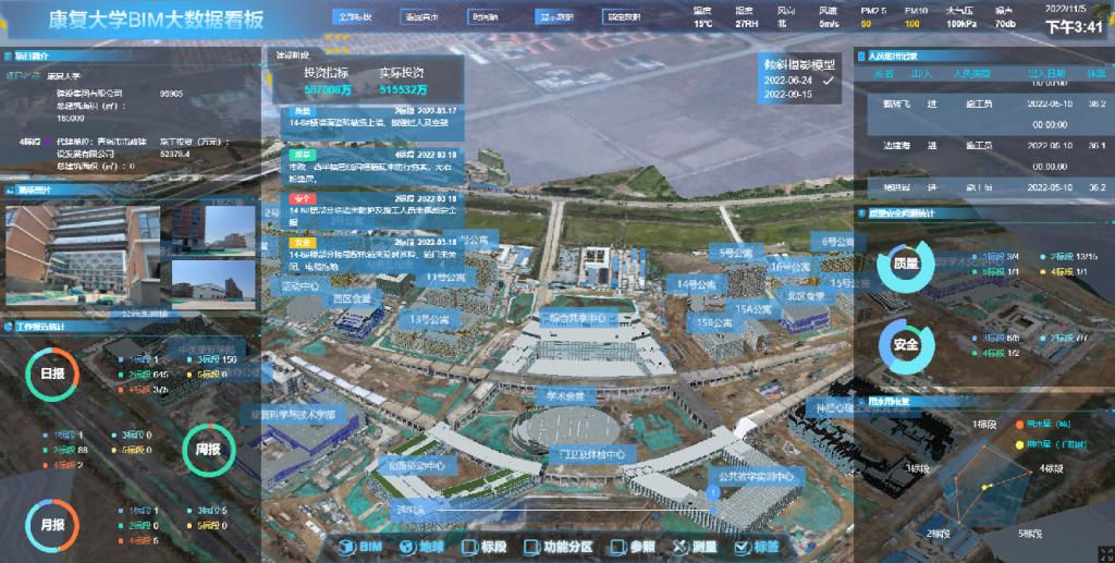 该项目涵盖整个康复大学建设全过程、全要素,实现了全过程数字化、全要素数据化,成功地将信息技术与建筑行业的需求紧密结合,开创性地构建了一个全面的数字孪生建设管控流程模型。该项目不仅在技术上取得了突破,更在管理理念上实现了创新。不仅为建设项目的顺利进行提供了有力保障,也为未来智慧校园的建设树立了新的标杆,展现了数字化技术在教育建筑领域的巨大潜力和广阔前景,同时也为如何进一步将CIM在城市管理中落地和使用提供了宝贵的经验。