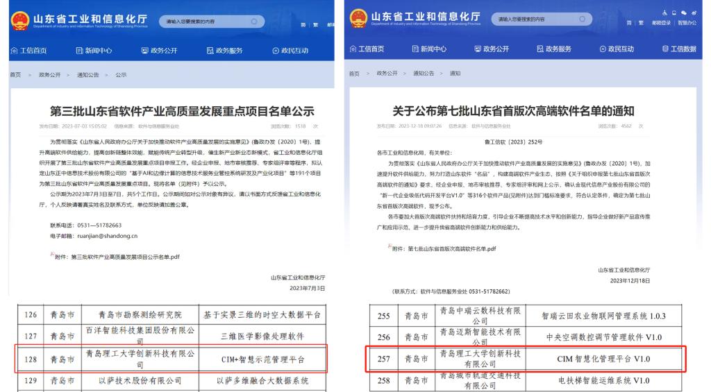 该项目的技术基础为创新科技有限公司自主研发的“CIM+智慧示范管理平台”,平台于2023年7月被山东省工信厅评为“第三批山东省软件产业高质量发展重点项目”,公司研发的“CIM智慧化管理平台”软件系统于2023年12月被山东省工信厅认定为“第七批山东省首版次高端软件”。