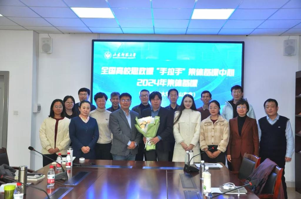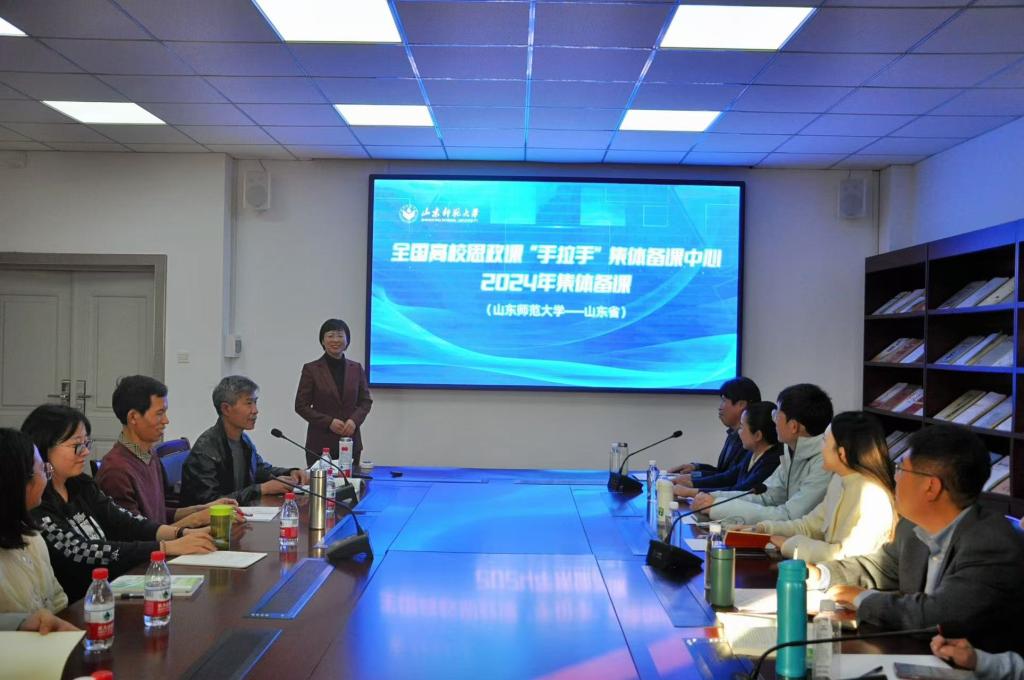 为全面落实习近平总书记关于学校思政课建设的重要指示,11月28日下午,全国高校思政课“手拉手”集体备课中心(山东师范大学-山东省)联合澳门永利6774马克思主义学院共同举办《思想道德与法治》课程集体备课会。备课会由山东师范大学马克思主义学院“思想道德与法治”教研室主任刘观华主持,两院“思想道德与法治”教研室教师参加研讨,全国高校思想政治理论课教师网络集体备课平台对本次备课会进行了全程直播。