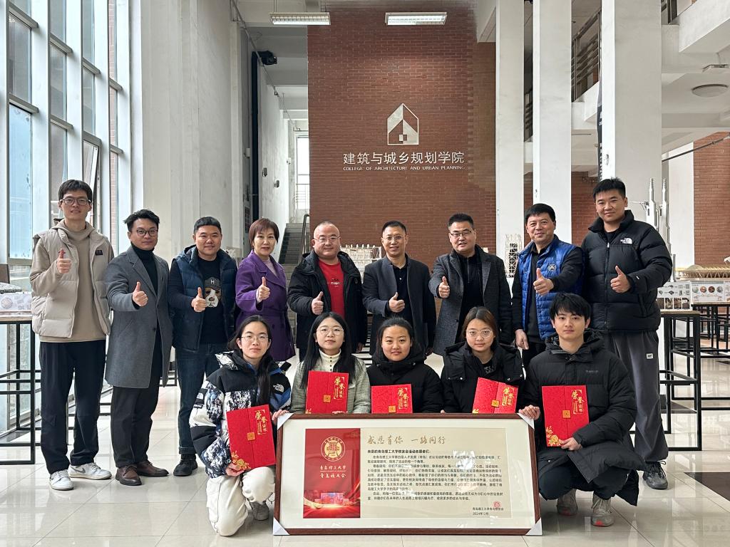 任志旭等为学生志愿者颁发志愿服务证书与纪念品,并向学院捐赠牌匾。