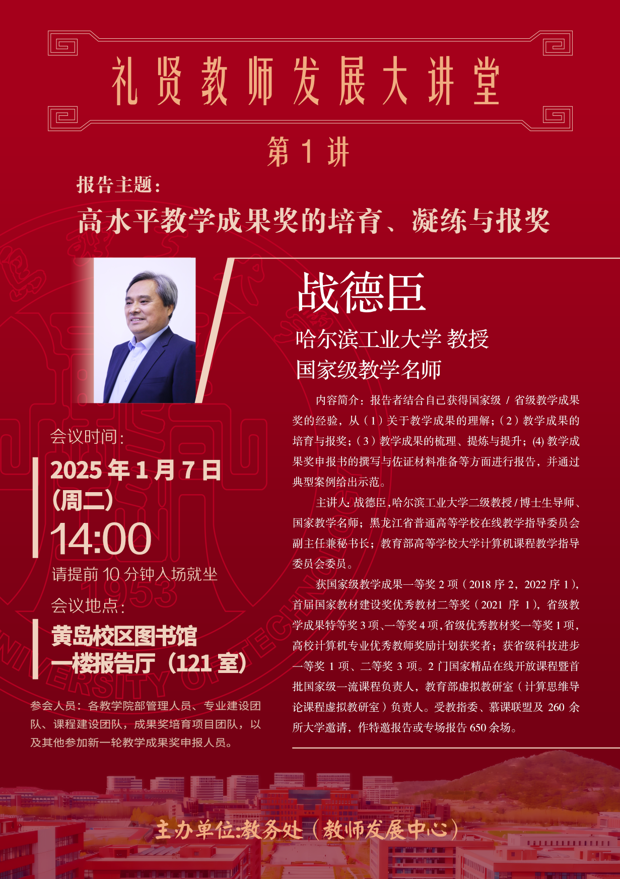 讲座地点:黄岛校区图书馆一楼报告厅121室