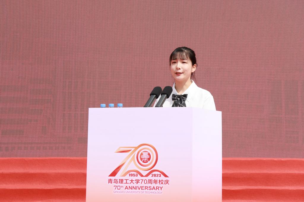 校学生会执行主席、理学院胡宝艳作为学生代表发言。她表示,作为新时代的理工学子,将传承发扬好理工精神,立志做有理想、敢担当、能吃苦、肯奋斗的新时代理工人,勇敢肩负起新时代强国荣校的历史使命,让青春在全面建设社会主义现代化国家的火热实践中绽放绚丽之花!