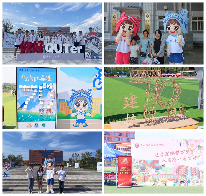 恰逢学校70周年校庆来临之际,迎新现场处处洋溢着浓厚的校庆氛围,礼贤广场设置了校史校情、数读理工、学校科研成果、优秀师生事迹等70周年校庆主题展览,让新生及家长充分了解和感受学校的文化底蕴,校团委、各学院制作校庆元素拍照打卡点,将校庆标识与各类展板、合影墙、新生小礼品相结合,校庆吉祥物“小卿”和“小礼”亮相迎新现场,获得新生及亲友的争相合影,多个学院在迎新现场准备了笔墨纸砚,欢迎新生现场执笔为校庆70周年留下“翰墨”祝福。